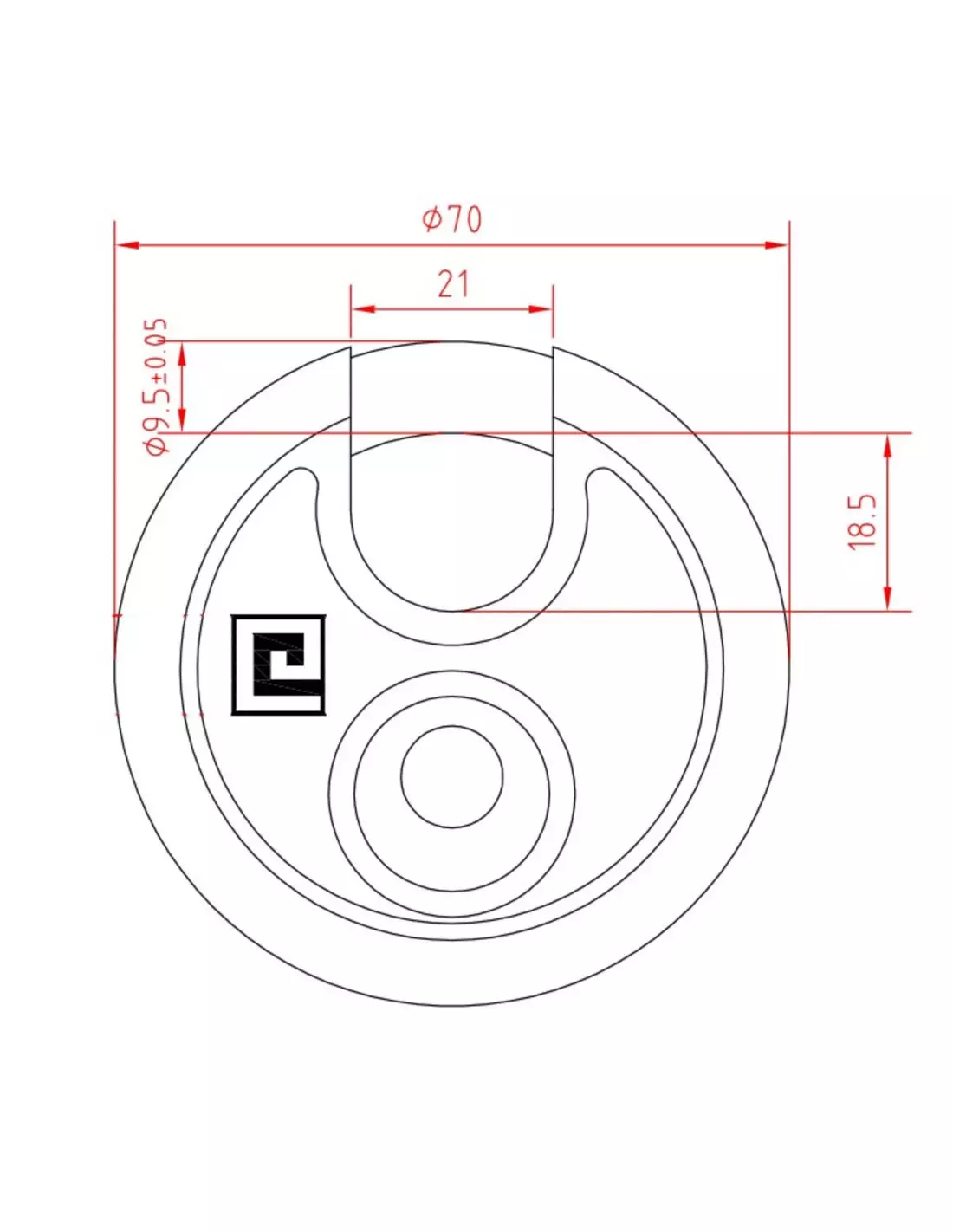 - Anse en acier cémenté nickelé diamètre 70 mm.