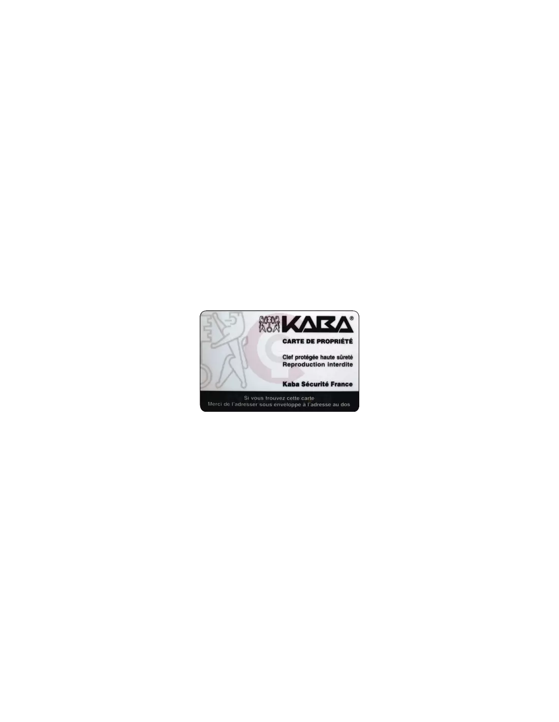 ATTENTION: Le fabricant kaba exige la carte de propriété pour toute reproduction de la Carte de propriété Kaba