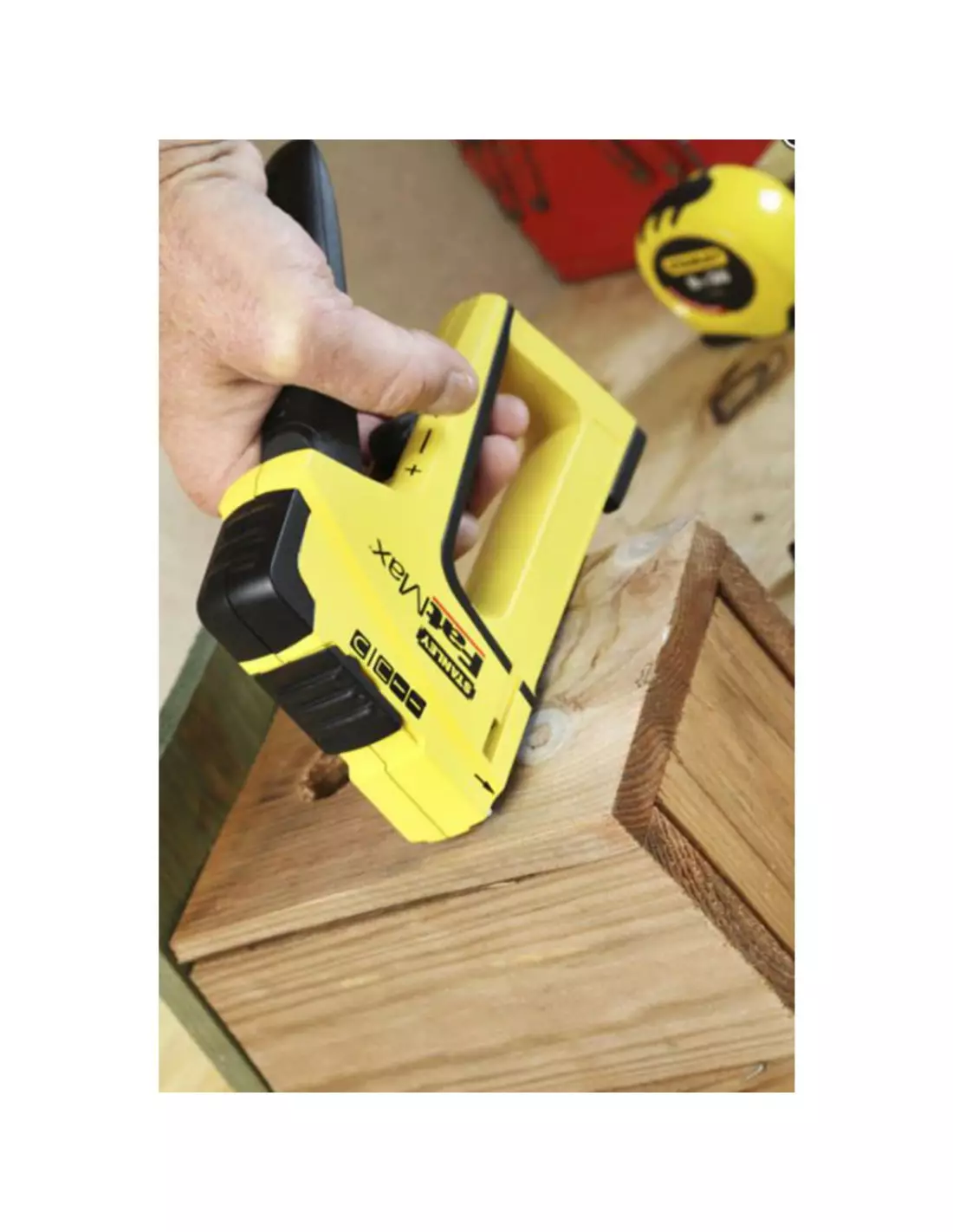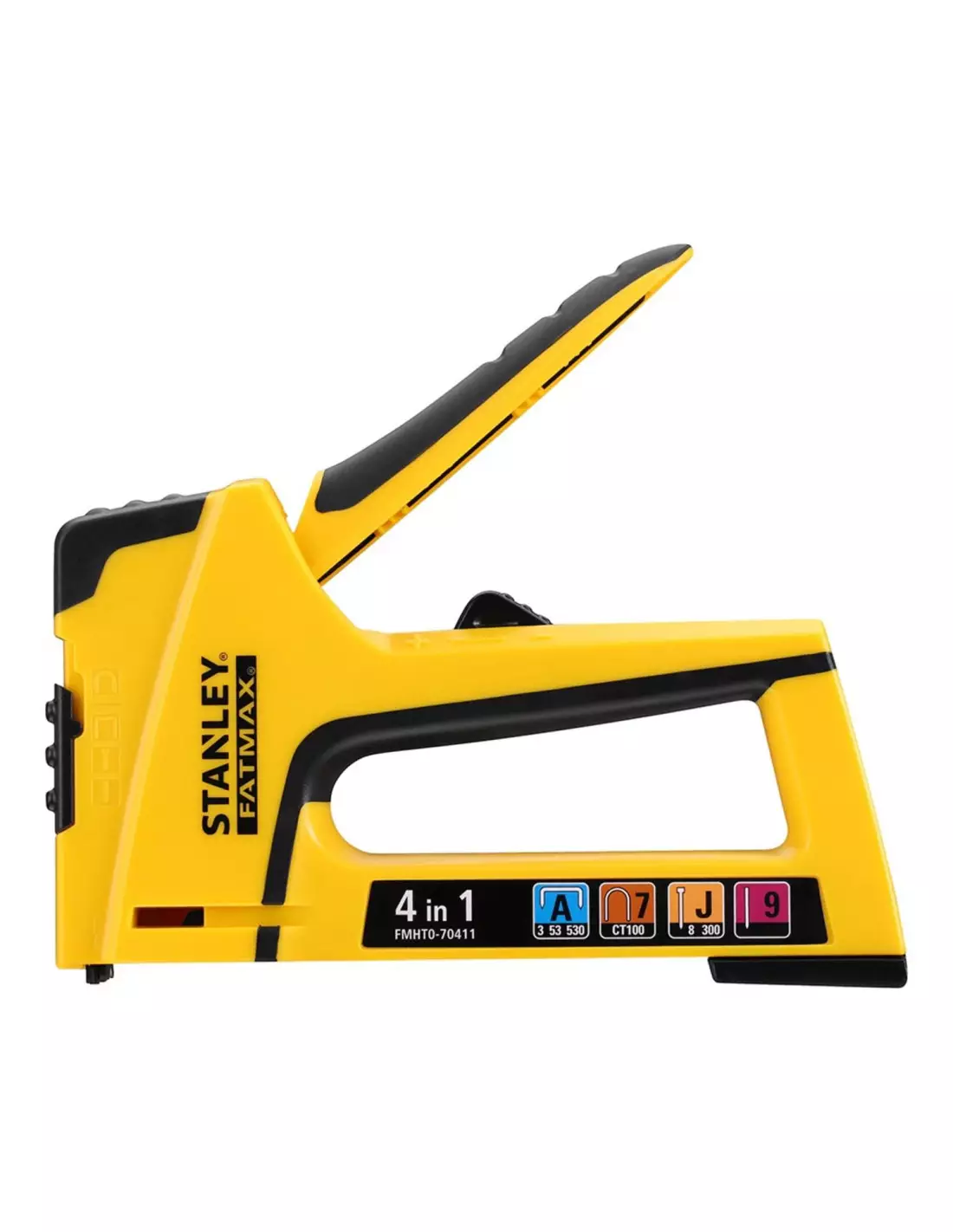 Cette agrafeuse-cloueuse tr400 corps abs fatmax® de la marque stanley est un outil polyvalent puisqu'elle est compatible avec 4 formats d'agrafes dont un type ''a'' 4 à 14 mm, pour câble 10 à 14 mm, un type ''j'' 12 à 15 mm et clous sans tête 12 à 15 mm. de plus, elle est dotée d'un guide-agrafes pour une application précise et un changement par le bas pour plus de praticité. cet outil offre une puissance ajustable en 2 positions et un corps léger en abs ainsi qu'une poignée permettant une manipulation aisée et confortable. de plus, pour une utilisation plus confortable, sa poignée présente une angle d'enclenchement faible.