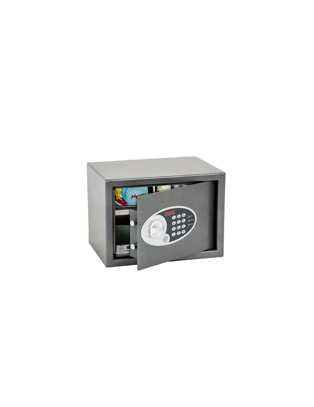 Le Coffre fort Dione à Serrure électronique SS de Phoenix de construction robuste est idéal pour usage professionnel, ou domestique, il peut être aussi utilisé dans des chambres d'hôtel. Il offre une protection de valeur assurable de 1,000€ d’argent liquide et de 10,000€ d’objets de valeurs.