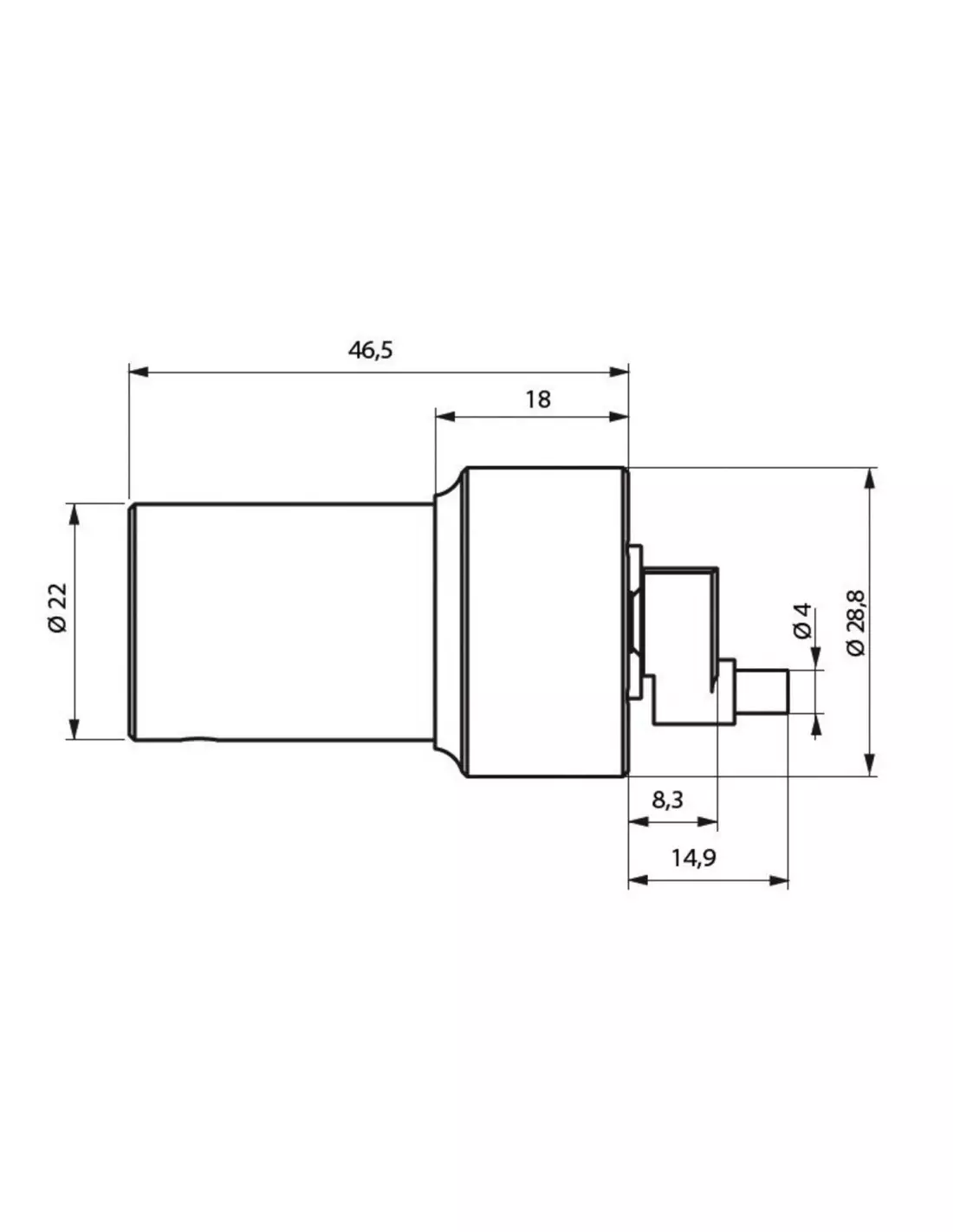 - Diamètre : 22 mm, sur embase de diamètre : 28 mm.