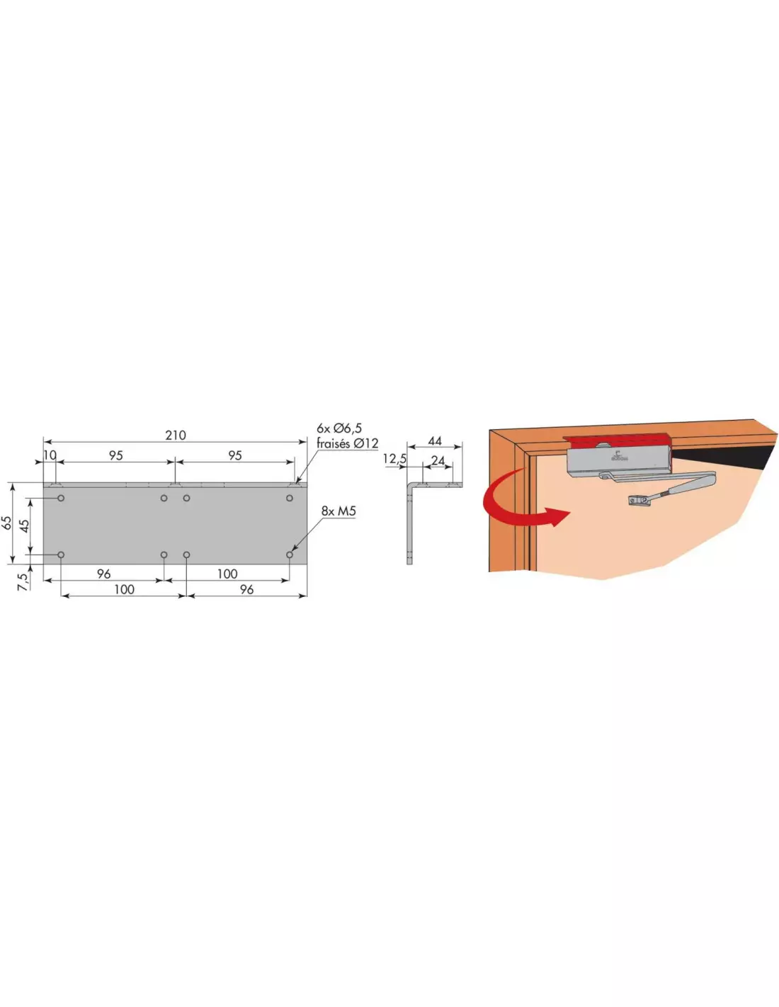 - Accessoires spécialement étudiés et prévus pour le montage dans toutes les situations des ferme-portes HR200 Heracles.