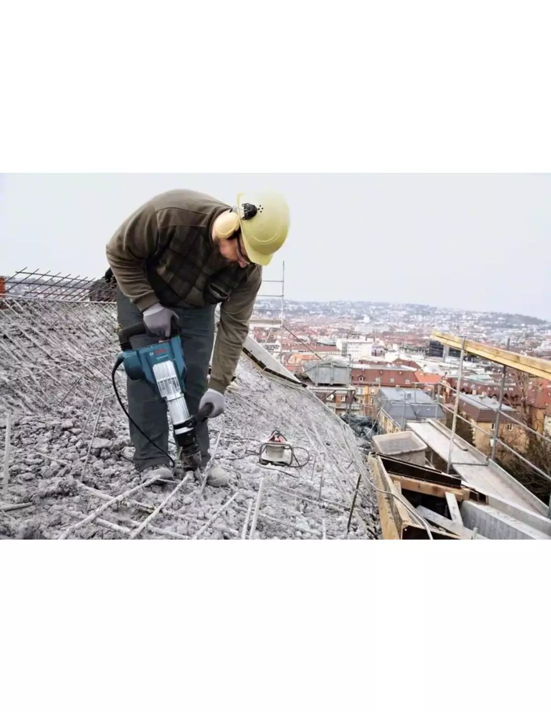 Le marteau-piqueur Gsh 11 VC Professional est le plus puissant des marteau-piqueurs Sds max Bosch avec Vibration Control. Il a une force de frappe de 23 J pour des performances de burinage extrêmes tout en ayant une longévité élevée grâce à des composants métalliques extrêmement robustes. Avec sa forme brise-béton typique, c'est l'outil idéale pour les travaux de démolition à la verticale et les travaux de burinage intenses. En outre, il a aussi une bonne prise en main et, grâce à sa construction allongée, il est adapté pour les travaux au sol.