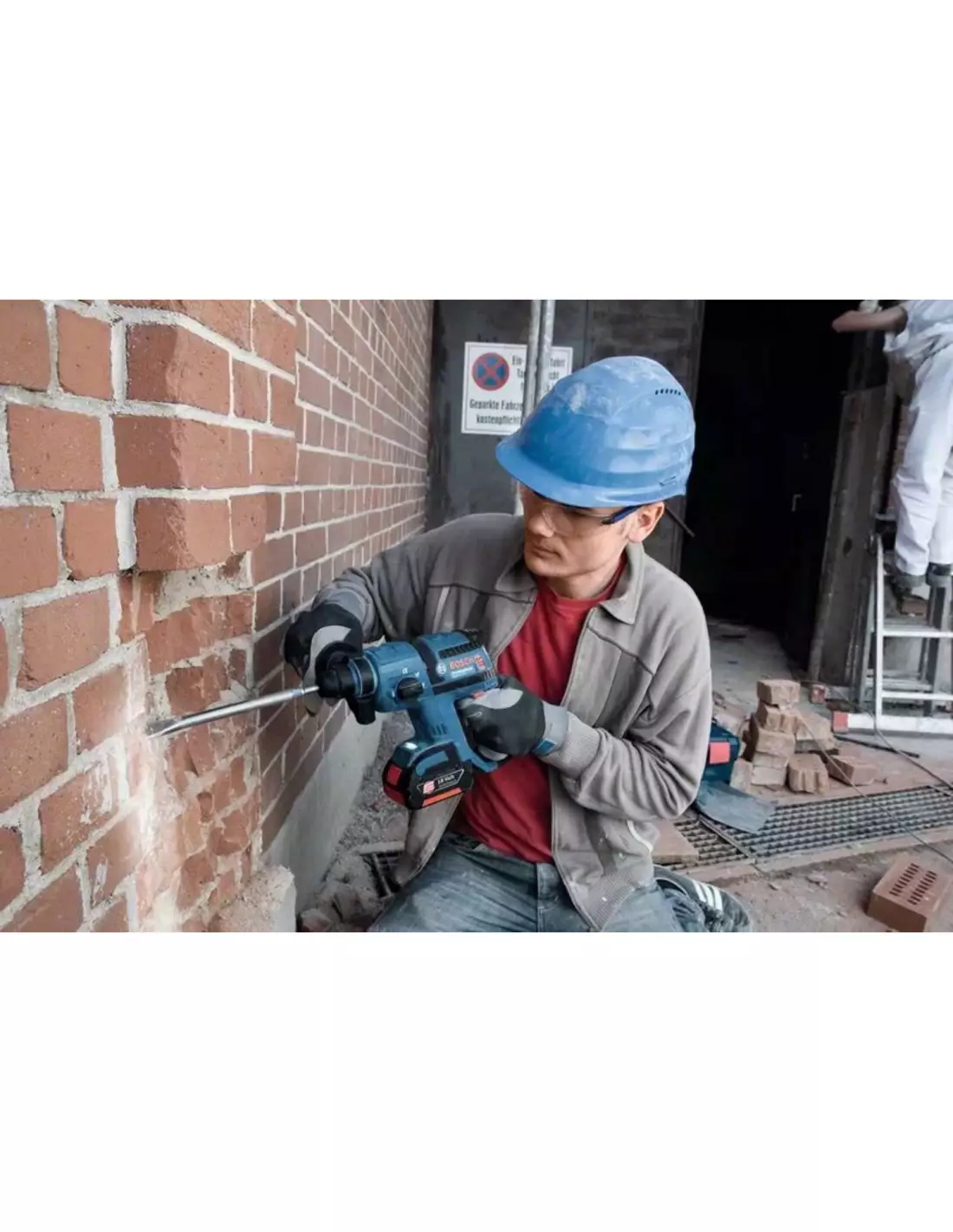Le perforateur sds-plus sans-fil gbh 18 v-ec de bosch a été conçu pour les perçages et burinages de béton, de maçonnerie, de métal et de bois. il dispose d'une forme compacte qui le rend idéal pour les perçages en hauteur. son moteur ec sans charbon et ses composants robustes optimisent sa longévité. ce perforateur est compatible avec toutes les batteries et chargeurs 18 v de bosch professional. il concorde également avec différents dispositifs d'aspiration de poussière. le perforateur sans-fil sds plus gbh 18 v-ec dispose d'un moteur sans charbon, d'une électronique de protection du moteur (emp), d'un éclairage led, d'un embrayage de sécurité, d'un variateur de vitesse et de la fonction vario lock.
