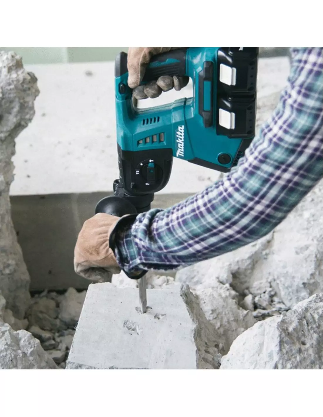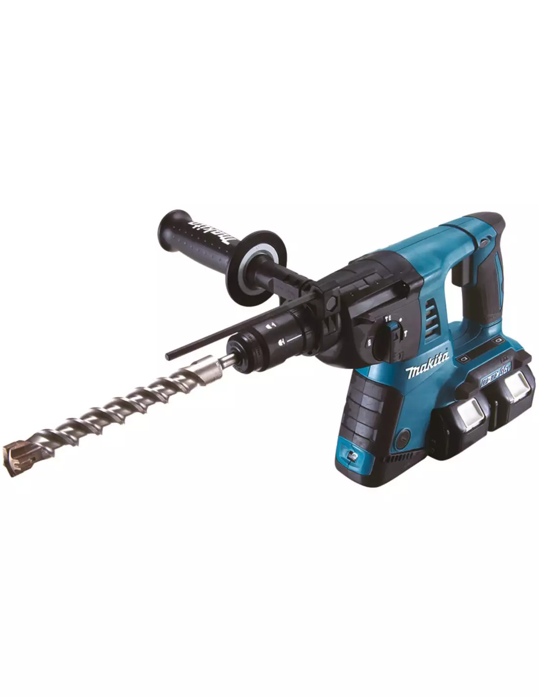 Le perforateur sds-plus sans-fil dhr264pt4j de makita est doté de la technologie xpt qui limite les infiltrations d'eau et poussières. son limiteur de couple protège le moteur ainsi que son utilisateur en cas de blocage. cette machine de 36 v est alimentée par 4 batteries 18 v. de plus, l'outil est équipé de mandrin interchangeable à verrouillage rapide (sds-plus ou auto-serrant). le perforateur sds-plus dhr264pt4j 36 v a des témoins de niveau de charge des batteries. il est muni d'une poignée arrière anti-vibration ainsi qu'une poignée latérale caoutchoutée orientable sur 360° avec butée de profondeur. l'ergonomie soft grip est là pour plus de confort, et le centre de gravité a été étudié pour un équilibre parfait de la machine.