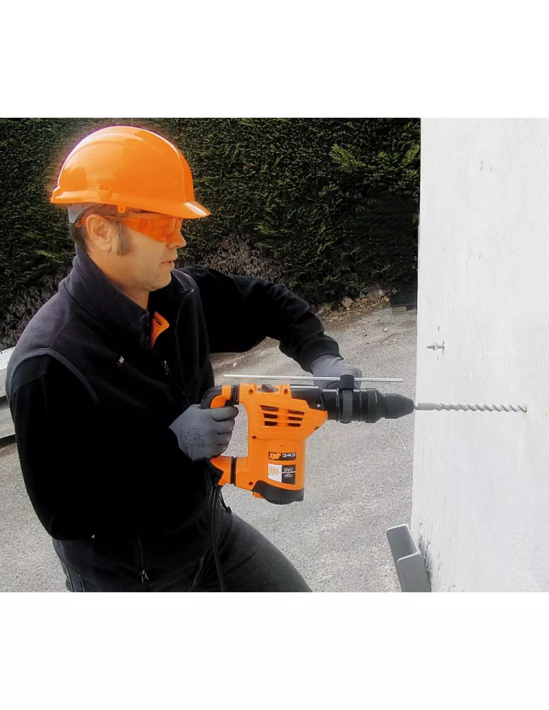 Le perforateur piqueur spit 343 svc sds+ est un outil qui optimise le confort dans l'utilisation. en effet, il est ergonomique, équilibré et dispose d'un système de réduction des vibrations, augmentant ainsi la précision. cet outil offre également de multiples positions de piquage. d'ailleurs, la rotation peut se faire dans les deux sens grâce à un inverseur. le câble sur rotule lui confère une plus grande résistance à l'usure prévenant la rupture de celui-ci. enfin, son mandrin interchangeable permet de changer rapidement entre le perçage à percussion dans le béton et le perçage classique.