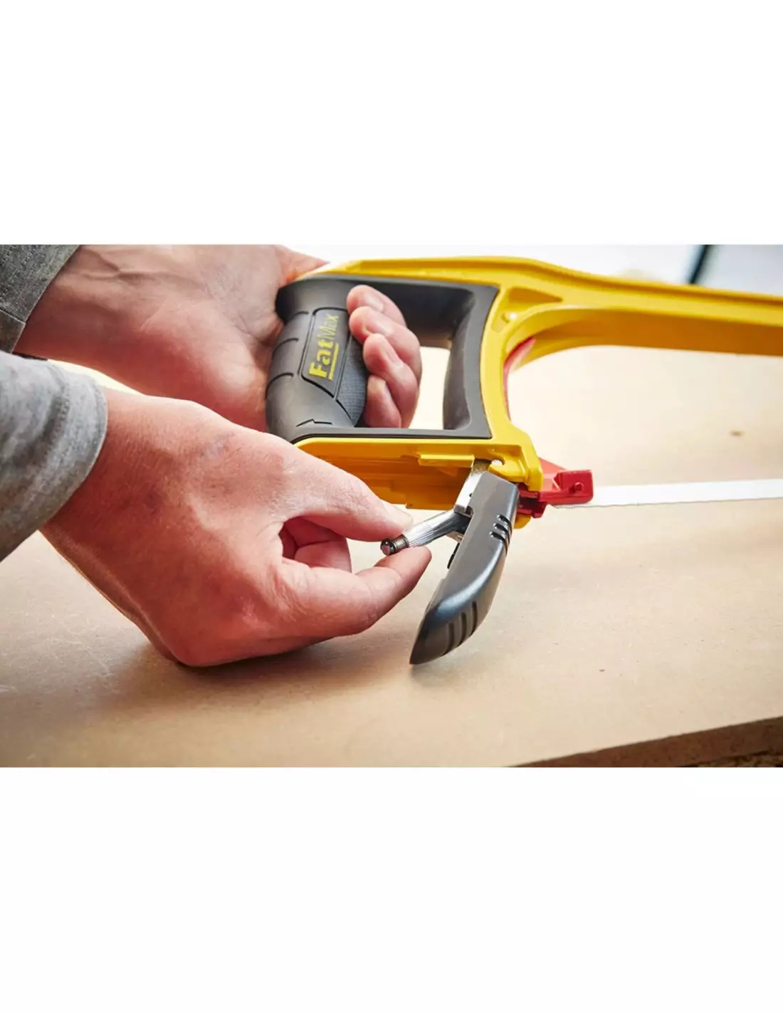 La scie à métaux 5 en 1 fatmax® de la marque stanley a une capacité de coupe jusqu'à 120 mm. elle permet des coupes standards de 90° et des coupes à ras de 45°. démontable en 5 configurations d'archer, cette scie est multifonctions. la tension de la lame peut être réglée jusqu'à 150 kg. sa poignée revolver et son repose doigt bi-matière sont en matériau soft grip, ergonomiques et antidérapants. une lame de scie sabre peuvent être stockées dans l'armature.
