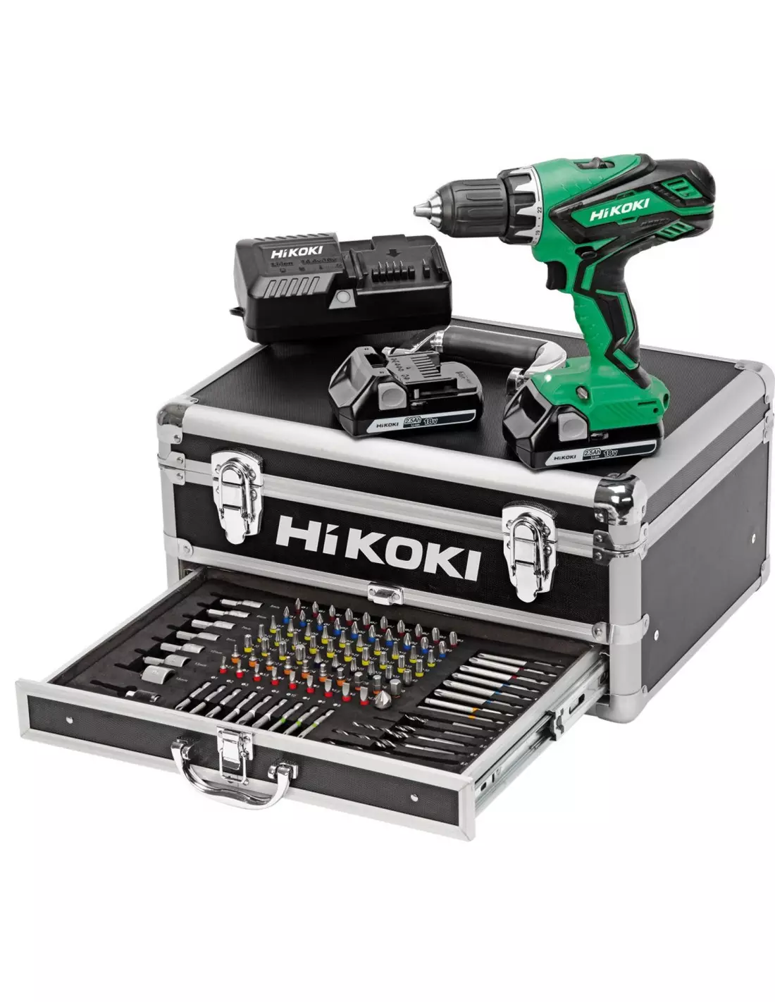 Description De Perceuse Visseuse 18v Hikoki 2x2,5ah Kc18djlfz 100 Accessoires :