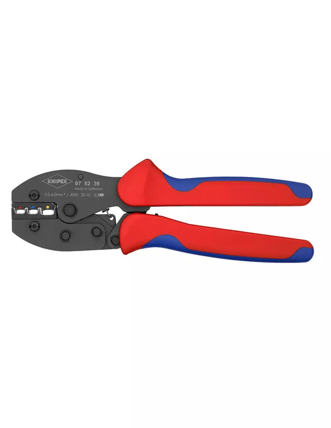 Cette pince à sertir preciforce® est fait en acier électrique au chrome-vanadium de qualité trempé à l'huile. elle présente des profils de précision et un blocage forcé pour un sertissage de qualité élevée. la pression de sertissage est réglable avec une meilleure précision en usine. cet outil offre une application moins fatiguant pour l'utilisateur grâce à la démultiplication par genouillère. sa forme courte et son poids faible ainsi que la position de ses poignées ergonomiques permettant une prise en main confortable et mobile.