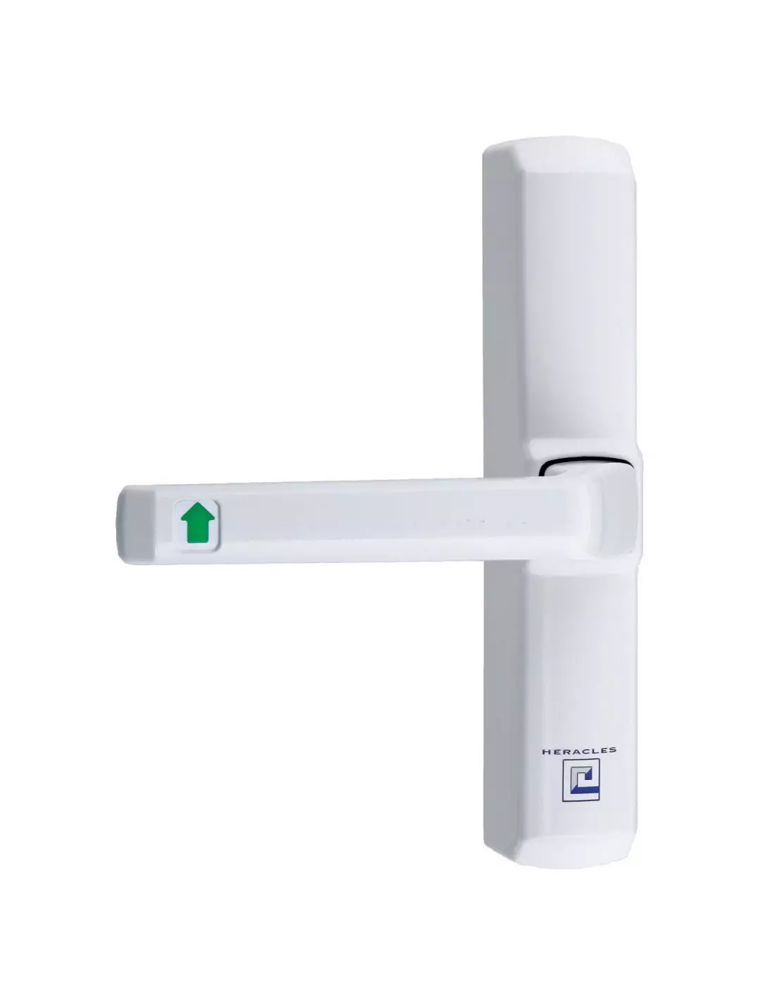 Le Crémone pompier à poignée rotative de la haute marque Heracles est conçu pour portes en bois, aluminium, PVC ou acier.