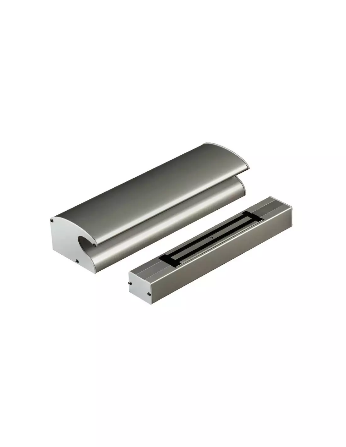 - Le profil poignée, équipé des contreplaques se fixe sur le vantail mobile et se compose de deux parties pour un réglage précis de la ventouse et de la contre plaque (aucune vis apparente).