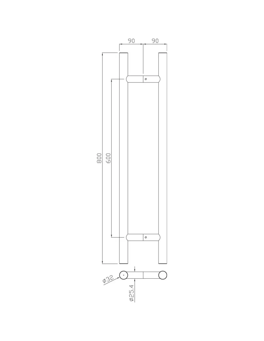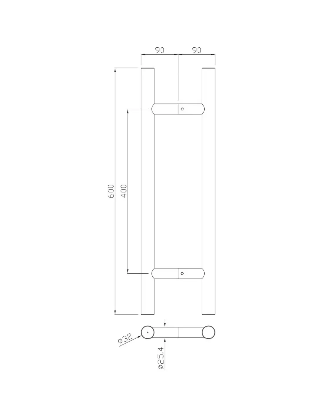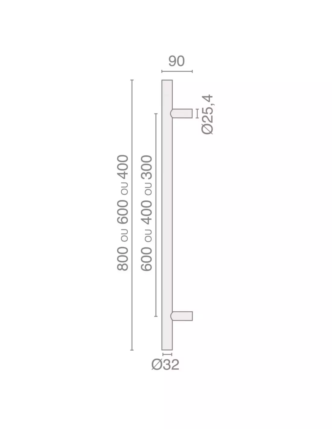 - Référence 488391 ensemble de poignées tubulaires à tirage série 5210 32 x 600 mm inox héraclès b-inox-pt009.