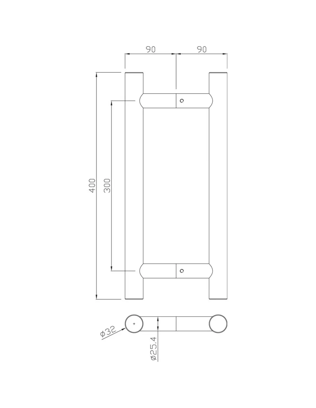 - Référence 488390 ensemble de poignées tubulaires à tirage série 5210 32 x 400 mm inox héraclès b-inox-pt005.