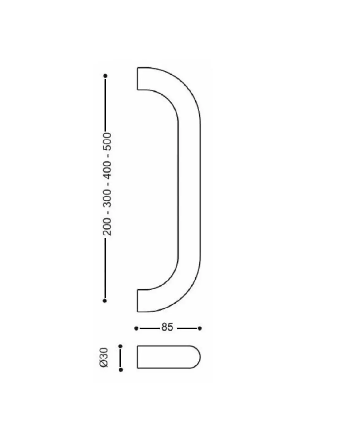 Poignée tubulaire alu droites PG 3000