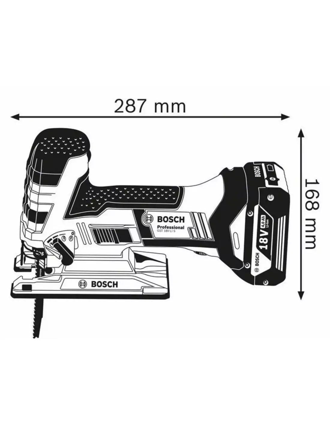- Cette scie sauteuse sans-fil gst 18V-LI S Professional est la plus puissante de la catégorie 18 V. Sa poignée champignon étroite assure une maîtrise parfaite même pour les coupes par en-dessous.
