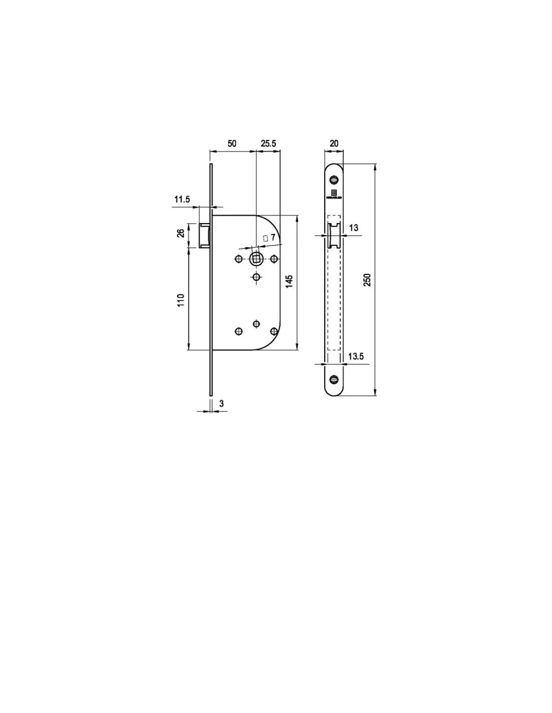 - Percement entraxe Din 38 mm pour montage traversant du béquillage sur rosace.