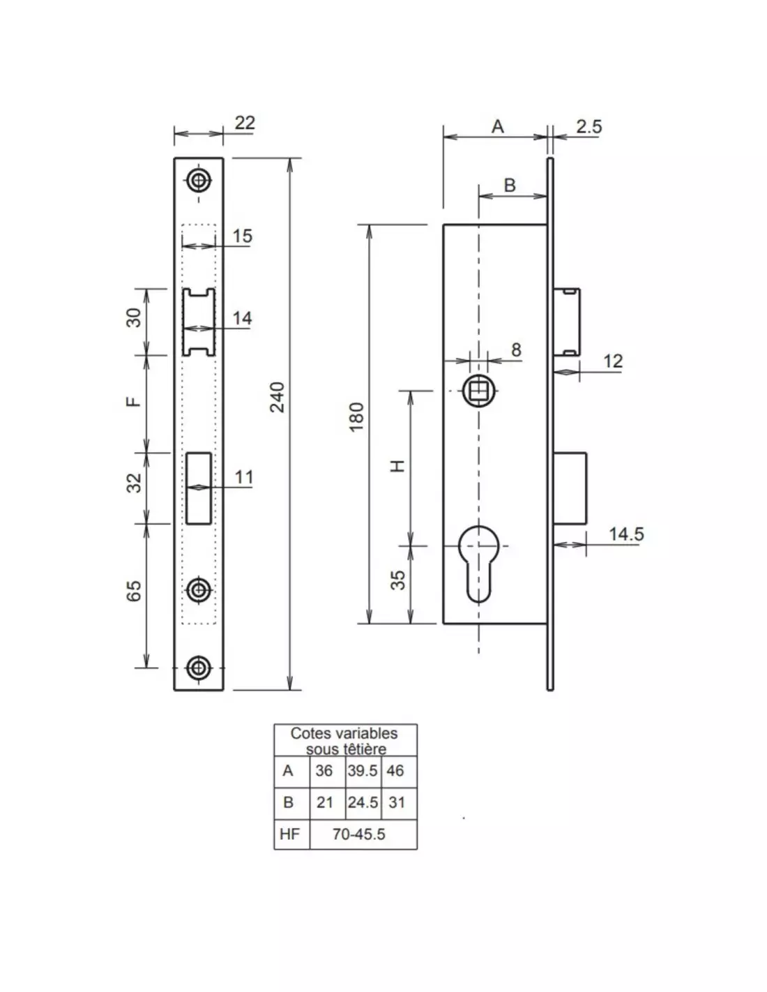 - Pêne dormant demi-tour à cylindre européen.