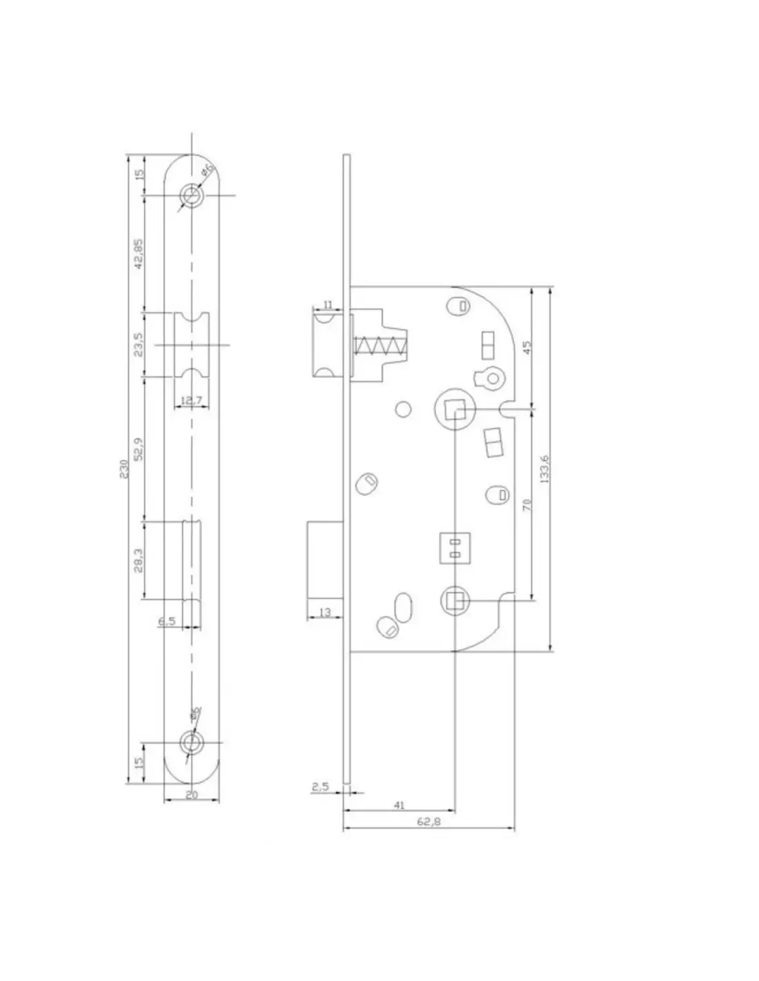 - Serrure à larder axe à 40 mm et entraxe à 70mm.