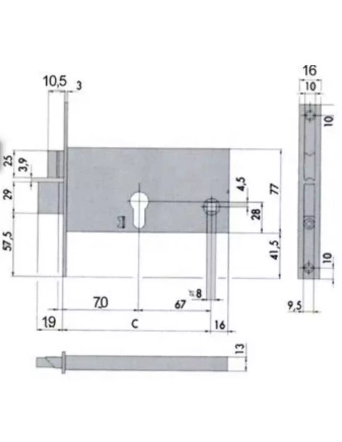- Pour modèle à cylindre européen : hauteur du coffre : 77 mm.