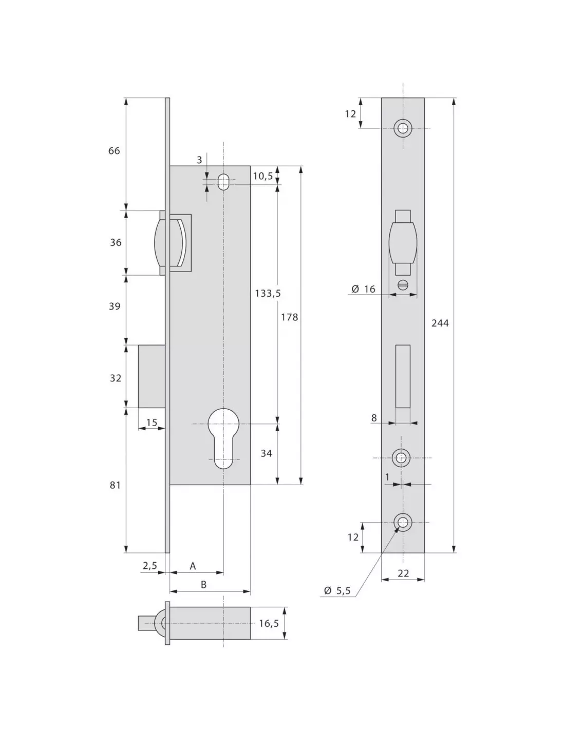 Le Monopoint à larder profil étroit pêne dormant et rouleau Série 2464 de la haute marque Stremler Assa Abloy est livré sans cylindre.