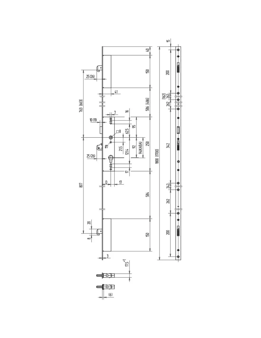 - Serrure 3 pts à têtière filante.