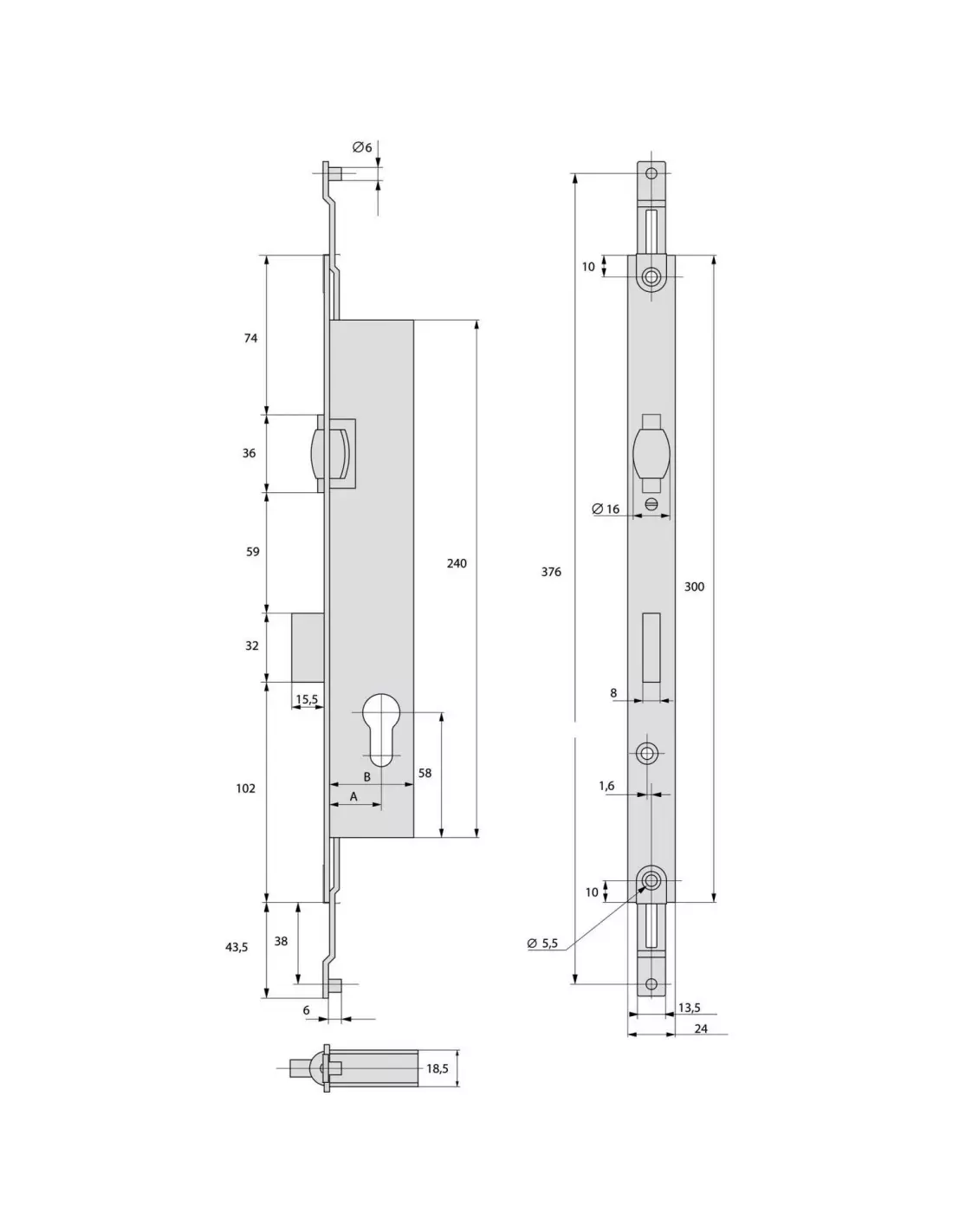 La Serrure à larder 3 points à tringles plates pêne dormant et rouleau Série 2274ti de la haute marque Stremler Assa Abloy est livrée sans gâche ni tringle.