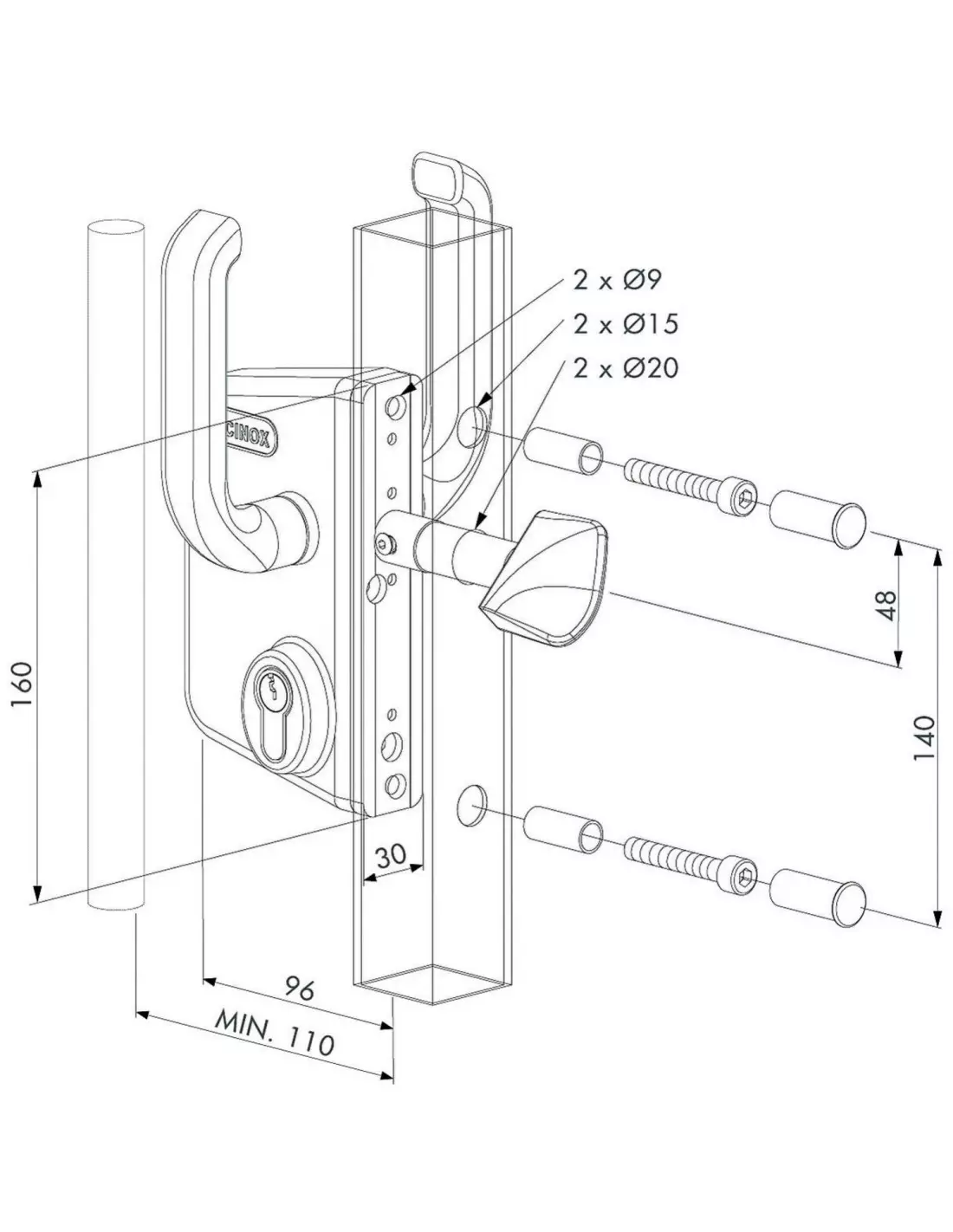 La Serrure de portail coulissant de la haute marque Locinox est conçue pour profil carré de 50, 60 ou 80 mm.