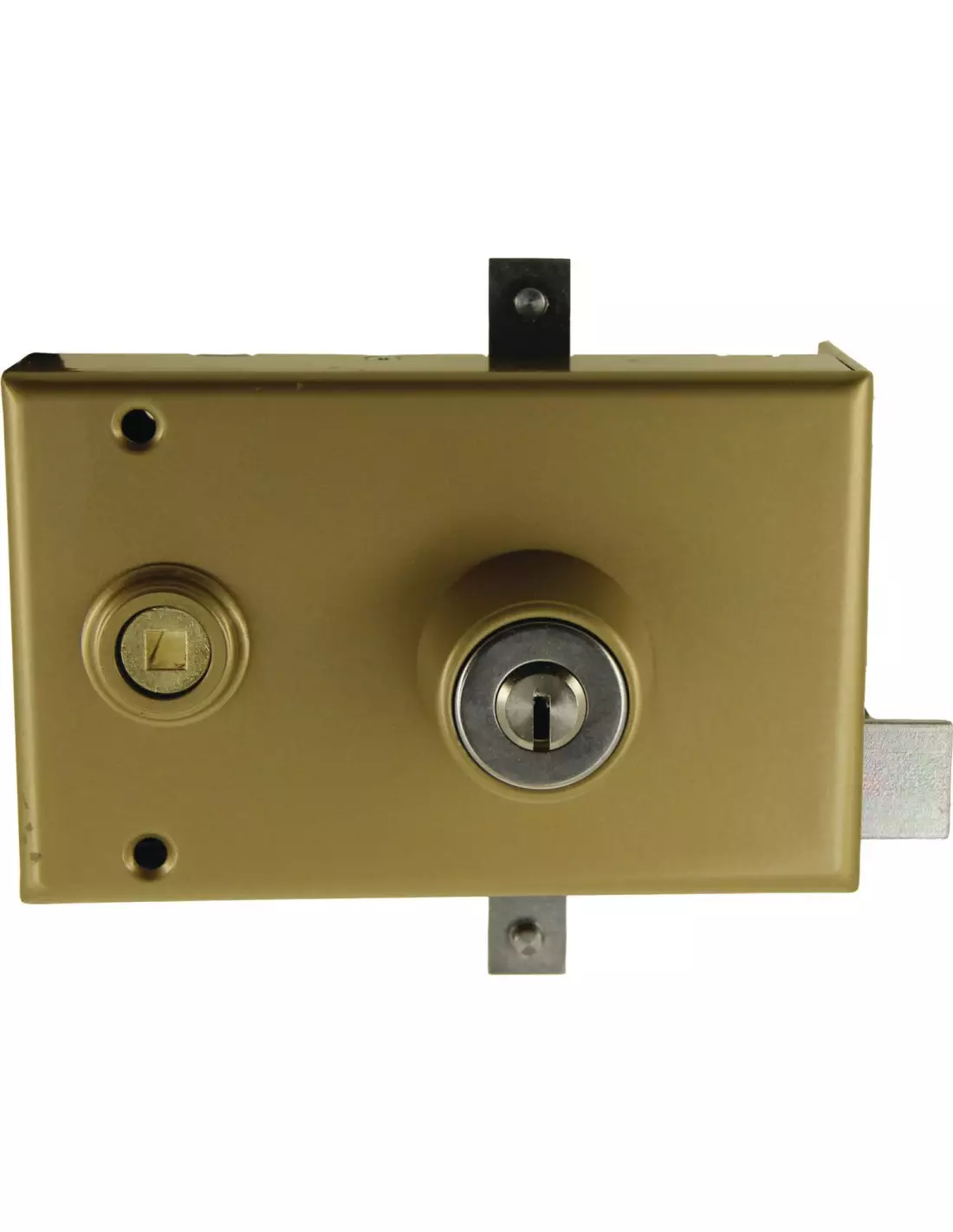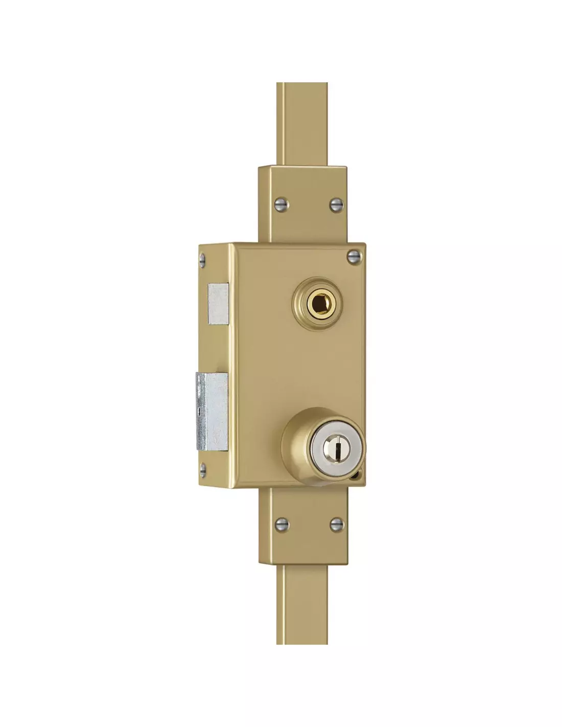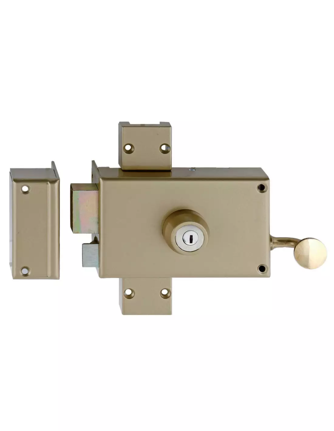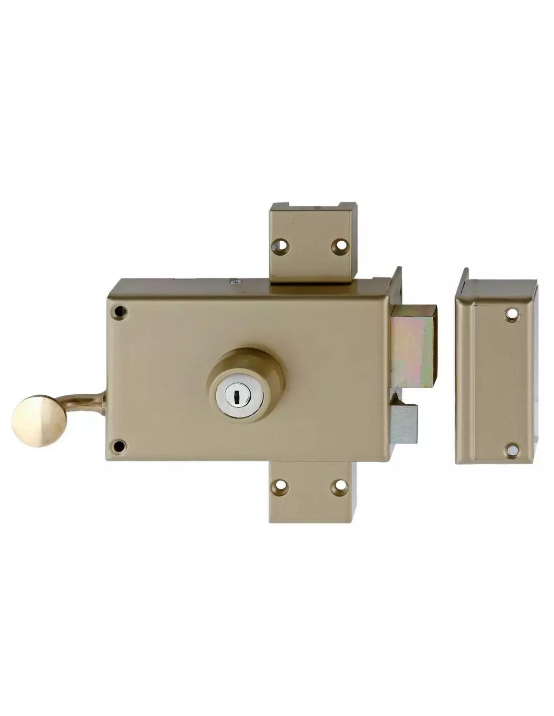- Serrure 3 points en applique 4000 S Ω avec coffre et gâche en acier embouti couleur or 15/10ème.