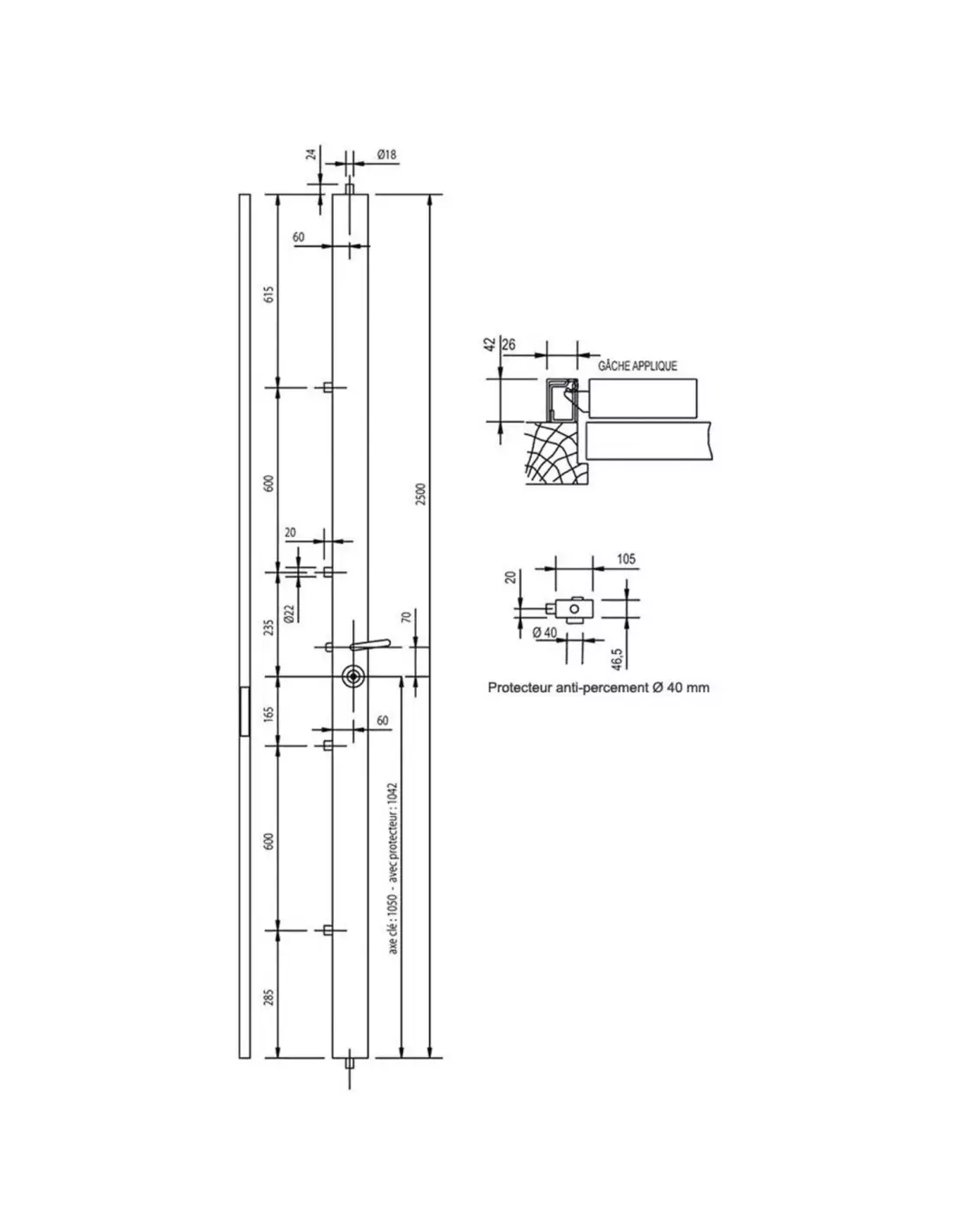 - Bandeau carénée sésame sans cylindre avec 5 points de fermeture latérale.